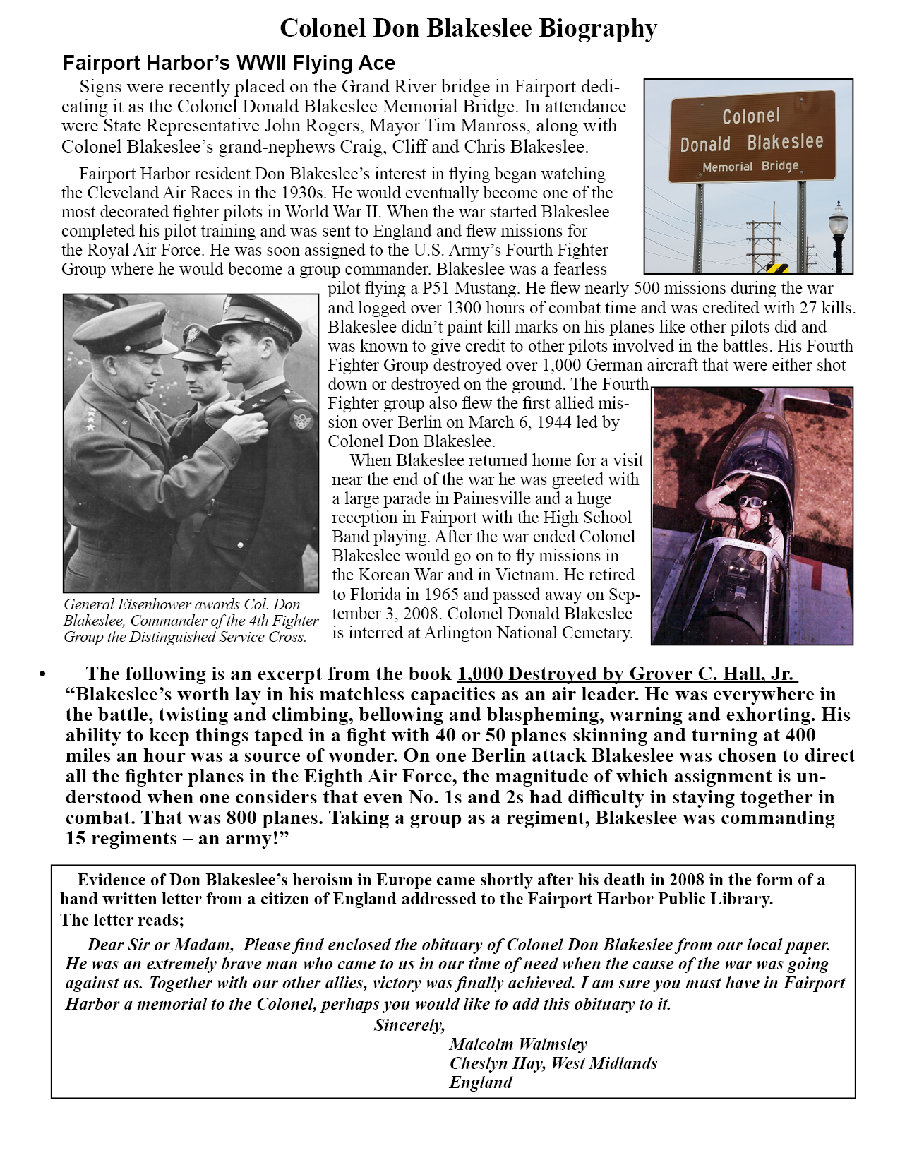 Col. Donald Blakeslee was one of the most decorated fighter pilots of World War II and the commander of the first American fighter squadrons to reach Berlin as the Allies ground down the German Luftwaffe. He was believed to have flown more missions than any other American fighter pilot during World War II.
