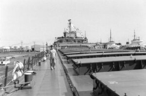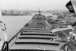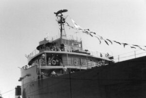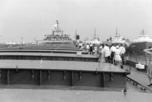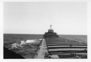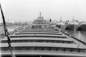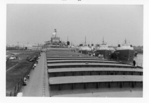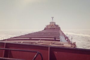 The Fitzgerald was a record setter from the day she first touched the water. On June 8, 1958, the largest crowd ever to witness a launching was on hand at River Rouge, Michigan, to see the largest vessel ever built on the lakes slide into the water. There was a Fairport Harbor connection present that day in sailor Bill Simko, who was part of the crew of the Fitzgerald. Being the pride of the American Fleet, assignment to the Fitzgerald was reserved for only the best officers and crew. Most sailors of that era would jump at the chance to be assigned to the ‘Fitz.” Her captains over the years were the most experienced on the lakes. In the fall of 1975 she was finishing her 17th year on the Great Lakes. 29 sailors, including officers and crew, manned the Fitz. 14 were from Ohio. On the last day of October the Fitzgerald sailed from Toledo to Silver Bay, Minnesota. They loaded taconite pellets for Ashtabula. While in Ashtabula, many of the Ohio sailors were able to visit with family and friends. From Ashtabula she was upbound to Superior, Wisconsin. There on November 9 the Fitzgerald loaded 26,116 tons of taconite at Burlington Northern Railroad Dock #1. Shortly after 2 p.m. she set outbound for Detroit. Several hours later the Arthur M. Anderson was sighted, also downbound with a load of taconite.
