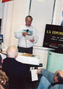 The Fairport Harbor Historical Society is dedicated to preserving and perpetuating historic tradition in the Village of Fairport Harbor and the Great Lakes area There is hardly a family in this town that hasn’t been touched by what has happened on the lakes. The stories abound: grandfathers who shoveled the iron ore at the docks; fathers, brothers, and sons who sailed or are sailing on the freighters; and those who worked the fishing boats or tugs. Eddie Bindon sailed the lakes for 27 years. He will forever be a part of that bond between Fairport Harbor and the Great Lakes.