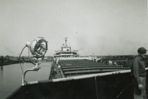 Good evening, I’m Fran Gabor. Eddie was my uncle. My father was Joe Majoros from Fairport and it was my father’s sister, Helen who married Eddie. I’m here this evening with my sister Debbie Kunsman, to honor our uncle and to share with you some of our childhood memories. After we were contacted by the Historical Society, Debbie and I I got in touch with our brother Chris, who lives in Arizona and memories started to flow. Having worked on the freighters for 25 years we have a vivid recollection of Uncle Eddie coming home only to have to leave again. But the time we spent with him are times that made us smile and laugh even today. Because when Uncle Eddie came home it was party time. There was food galore! Everything was top shelf like steaks, lobster, filets, crab legs, and prime rib. Back in those days my brother and sister would walk home for lunch from St. Anthony’s school to Helen and Eddie’s house on Courtland street to find perhaps prime rib for lunch but more often it was open face steak or turkey sandwiches piled high with meat and smothered in gravy. It was a wonder that they were able to stay awake in school in the afternoon. When we started reminiscing, this was the very first thing the both of them brought up. We remembered that Eddie enjoyed his liquor and a good Camel cigarette.