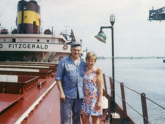 On his last visit home, I remember a conversation I had with him. This time there was no Donald Duck but a seriousness I was not used to seeing. He told me he was ready to retire having developed a sense of fear and uneasiness with being on the lakes. It was about that time that he had purchased a 2 carat diamond ring for Helen for their anniversary. He made arrangements with a friend whose name I do not recall to keep the ring for him until he returned because he didn’t want to take it on the Fitz. Perhaps it was an omen. After the ship went down his friend got a hold of my Uncle Julius, my father’s brother and made arrangements to meet to give Julius the ring. The family was gathered in Helen’s kitchen when Uncle Julius came in with the ring and presented it to her. There wasn’t one dry eye and I can tell you personally it was one of the saddest moments of my life. Uncle Eddie was a man who just wanted to finish out his time on the Fitzgerald and come home to retire. But on Nov. 10th, 1975 the gales of November had its way with the Edmund Fitzgerald and the 29 souls aboard all made their final journey home.