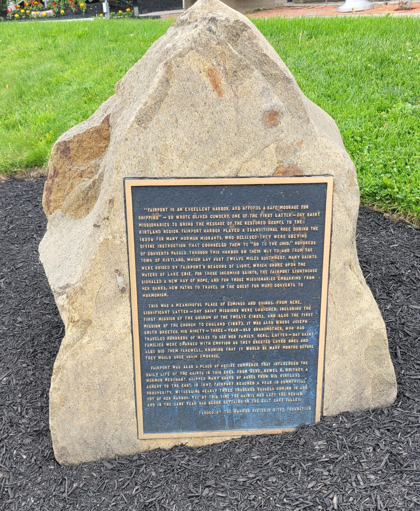 In 2003, the Ensign Peak Foundation (Formerly the Mormon Historic Site Foundation) funded this historic plaque, to be placed near the prominent Fairport lighthouse. Mayor Frank Sarosy helped unveil the marker, which pays tribute to the more than 3,000 members of the Church who passed through the harbor. A museum exhibit entitled “Fairport Harbor: Gateway to the Gathering” is on display at the Fairport Harbor Museum during the spring and summer and will be displayed at the Lake County Historical Society during the fall and winter. It was also funded and created by the Ensign Peak Foundation.